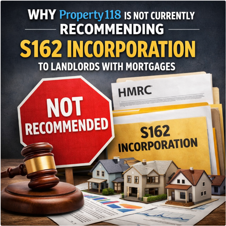 Why Property118 is NOT currently recommending s162 incorporation to landlords with mortgages